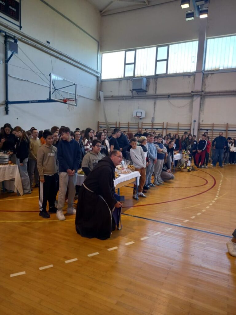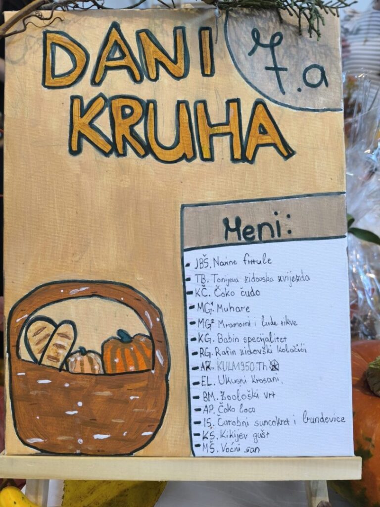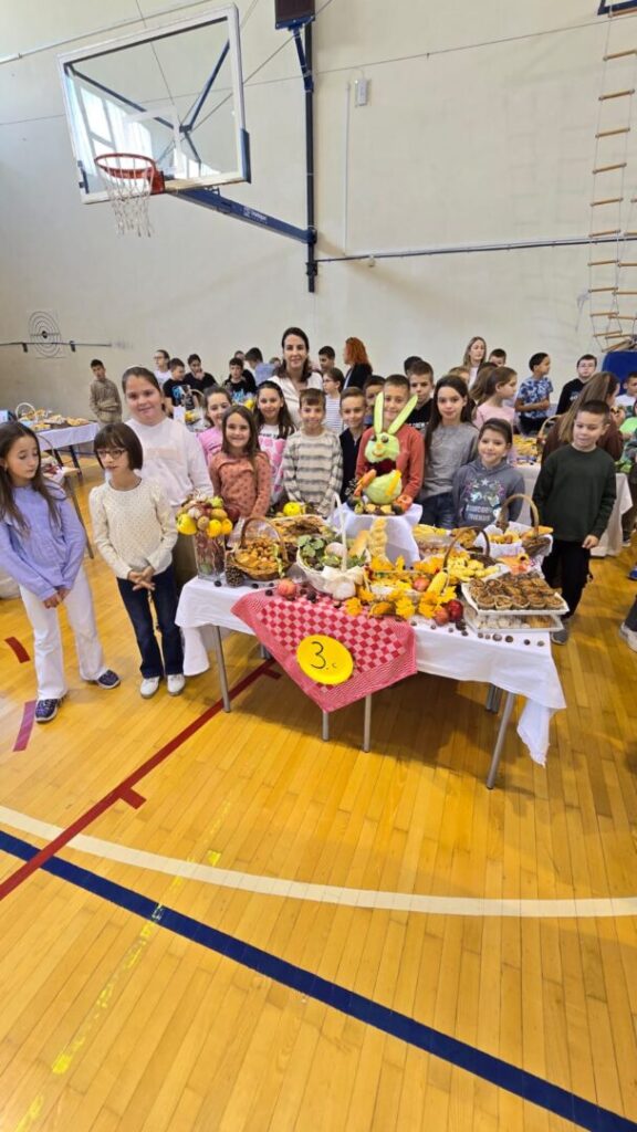 Dakle, 16.10.2025. godine u našoj školi održali su se Dani kruha. Prvi put nakon dugo godina u svečanosti su sudjelovali i učenici viših razreda. Ove godine odlučili smo se na svojevrsno natjecanje među učenicima. Svaki razred predstavio se sa svojim stolom kojeg su morali prikladno popuniti pekarskim proizvodima, slasticama, raznim voćkama te svim drugim jesenskim simbolima. Pobjednici su se birali u 2 kategorije. Učenici od 1. do 4. razreda te učenici od 5.do 8.razreda. Stručni žiri se sastojao od tri člana Ankica Kravar (defektologica), Ivana Duvančić (tajnica) i Ivana Rak (psihologica) te nije imao nimalo lagan zadatak. Nakon dugo vijećanja odlučile su da pobjedu nose učenici 3.c i 5.c razreda. Učenici su nagrađeni slatkim poklon paketima. Naš fra Lukica blagoslovio je sve slastice, a učenici 8.razreda Bepo Mesarić i Kaja Hrga pokazali su nam kako se mijesi kruh. Dan je protekao u lijepom i dostojanstvenom raspoloženju,a svakako je važno napomenuti da se skoro sve pojelo.